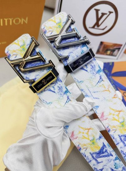 / 皮带:Lv..路易..顶级原单复刻. 腰带:百分百头层牛皮,保证真皮。双层菱形渐变色设计.24K纯钢扣涂鸦彩绘图案艺术双面可用专柜同等质量, 送人自用首选 包装