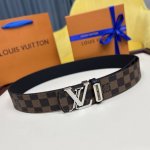 特 4.0宽 本款 Lv Initials 双面腰带凝聚 Pharrell Williams 对典藏设计的灵感探索,通过焕新 Damier 图案和 Marque