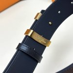 特 3.4宽 Lv Dynasty 双面腰带选用光滑皮革塑造正反两面,以耀目黄铜搭扣呈现 L 和 V 字母的繁复交织,可为各式造型注入典雅意味