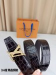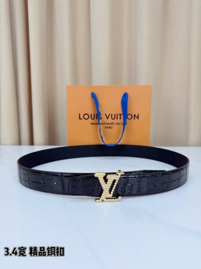 / 3.4Cm宽Lv铜扣皮带,精选头层牛皮,细腻鳄鱼纹肌理尽显奢华质感。手工打磨黄铜扣头,温润光泽与黑色皮面完美融合。匠心缝线勾勒精致轮廓,为穿搭注入复古优雅格调。
