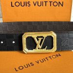 Louis Vuitton 路易威登不锈钢字母板扣 寬度4.0Cm 男士钢扣腰帶 意大利進口头层牛皮底自然精巧的格纹圖案 全新真皮腰帶 百搭休閒 时尚精美