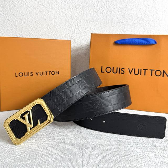 Louis Vuitton 路易威登不锈钢字母板扣 寬度4.0Cm 男士钢扣腰帶 意大利進口头层牛皮底自然精巧的格纹圖案 全新真皮腰帶 百搭休閒 时尚精美 DDD