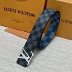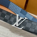 本款 Damier Lv 40 毫米双面腰带做工精良,风格经典。深色牛皮革皮带与 Lv...