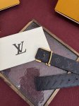 特 本款 Damier Lv 4.0宽 双面腰带做工精良,风格经典。深色牛皮革皮带与 Lv...