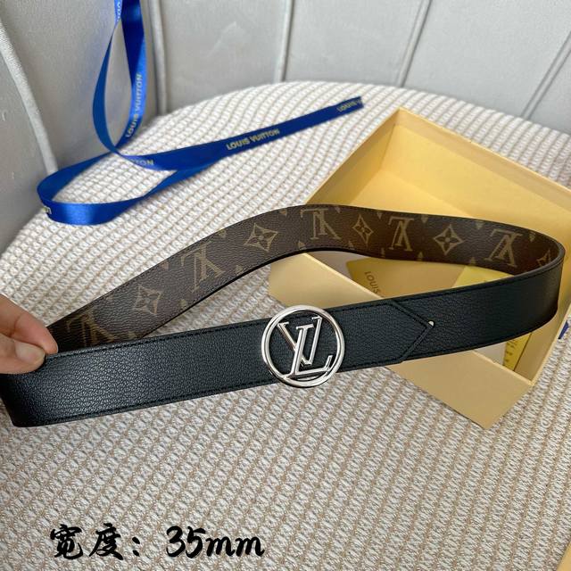 原版包裝1.0 L0Uis Vuitt0N 今季新品 男士原單腰帶 寬度35毫米 經典帆布面料襯托進口小牛皮山羊紋底 搭配精鋼圓形五金搭扣 可雙面使用佩戴