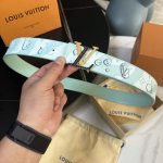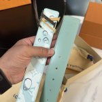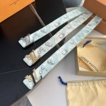 特 此款腰带金色白色的字母带扣璀璨夺目,以防水牛皮衬里,再覆以 Monogram 帆布,宽度:4.0宽 是牛仔裤的理想之选。