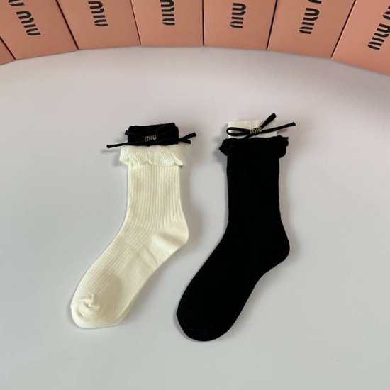 / 特 配包装 Miumiu 缪缪 新款经典中长款饰品袜堆堆袜袜子!一盒两双, 专柜同步筒款袜子,大牌出街,潮人必备超好搭。