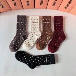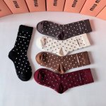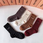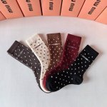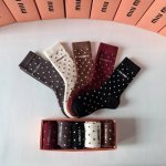 特 Miumiu 缪缪新品女款长筒袜子 一盒五双 提花经典Miumiu字母,透气柔软舒适,超火爆小单品,大牌出街,潮人必备超好搭