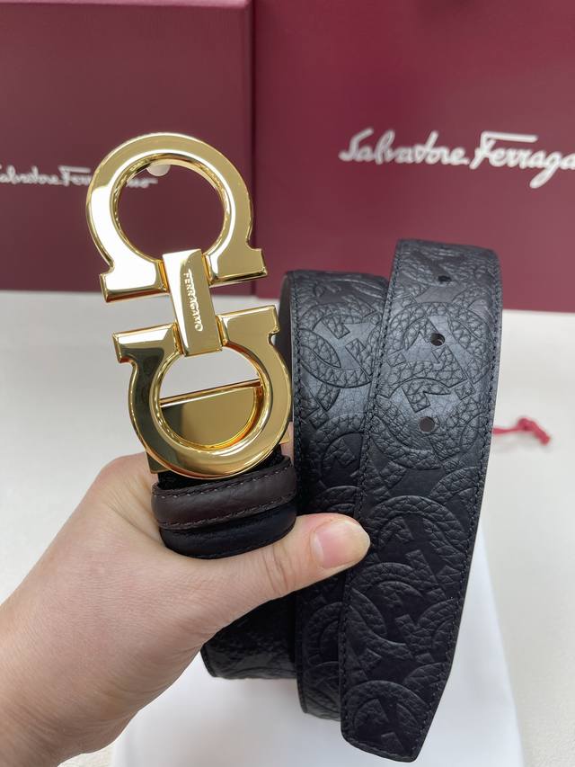 寬30Mm 驢家最新出品,雙面進口荔枝紋togo小牛皮 一面純色壓印標誌性圖案 一面彩色絲印圖案 搭標誌性五金 雙面可用 百搭時尚