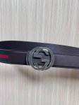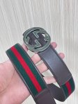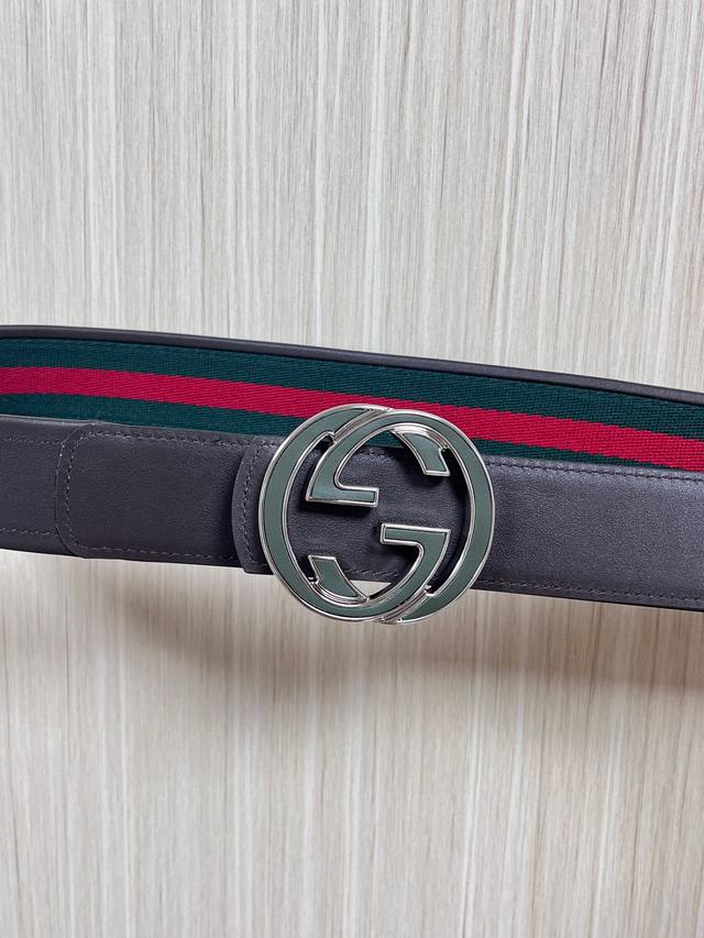 / 这款双面腰带采用红绿织带与深棕色牛皮革,搭配可拆卸互扣式双G搭扣,为2025秋冬系列再添新作。4.0宽包边接皮挂扣