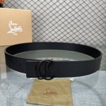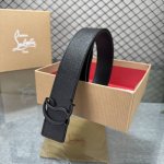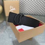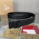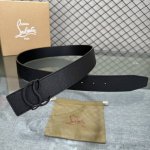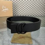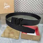 配包装盒3.8宽Christian Louboutin 男士Ricky标志性徽标搭扣黑色腰带黑底,双面牛皮。