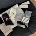 配包装 一盒四双 Thom Browne 桑姆 布朗尼Tb超级爆款网红中筒袜子经典三条杠搭配小狗设计,Ins明星网红推荐火爆至极精梳棉材质织造,轻薄柔软透气,四季通用,欧美大牌街头必备