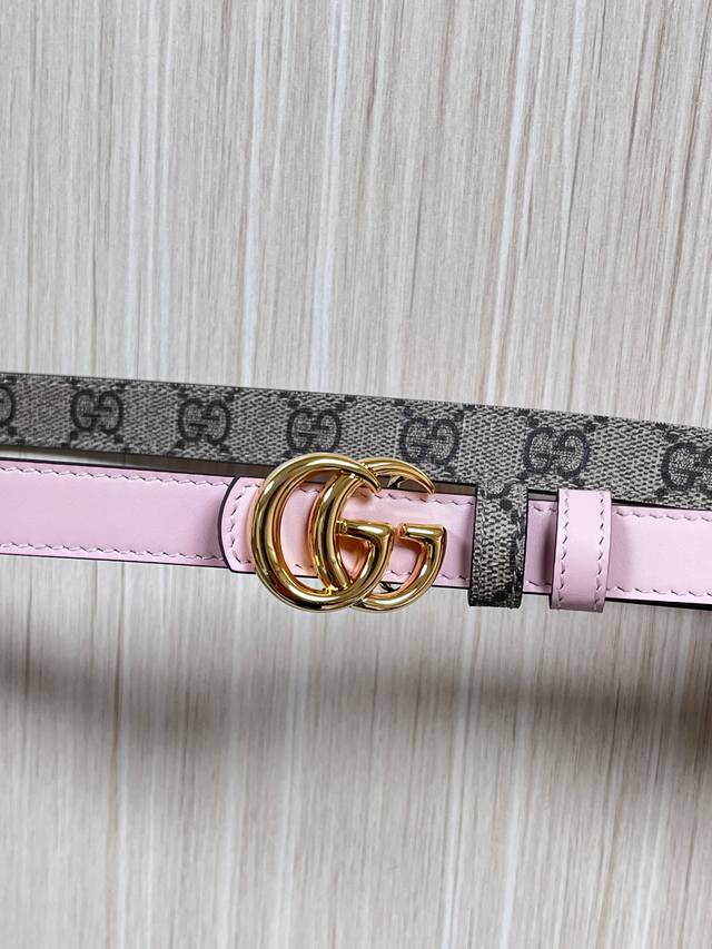 / 2025秋冬系列焕新演绎富有辨识度的Gg Marmont系列。这款双面窄版腰带采用Gg印花压纹皮革与皮革材质匠心打造,缀饰双G搭扣。 商品细节 一面为粉色Gg印
