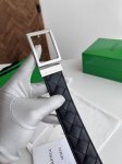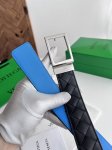 Bv 新款男士编织腰带 双面用 纯手工Intreccio大格子编织 双面意大利小牛皮搭配复古银色可旋转方形扣 正面有标识 宽度35Mm 颜色: 黑色中蓝色 DDD