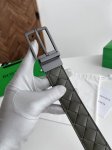 Bv 2025最新款男士编织腰带 双面用 纯手工Intreccio大格子编织 双面意大利小牛皮搭配真空枪色可旋转针扣 皮带宽度35Mm 颜色: 军绿色板栗色