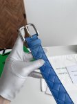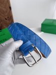 Bv 2025最新款男士编织腰带 纯手工Intreccio大格子编织 双面意大利小牛皮搭配微复古银色针扣 宽体大针搭配扁孔设计尖尾 皮带宽度35Mm 颜色: 冲浪蓝 金棕色