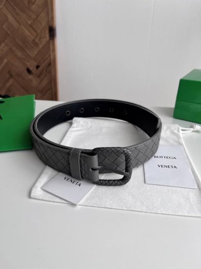 Bv 新款男士编织腰带 双面用 纯手工Intreccio大格子编织 双面意大利小牛皮搭配真空枪色可旋转方形扣 正面有标识 宽度35Mm 颜色:...