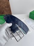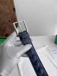 / Bv 2026最新款男士编织腰带 纯手工Intreccio大格子编织 双面意大利小牛皮搭配微复古银色针扣 侧面有标识 皮带宽度35Mm 颜色: 深蓝 浅蓝 DD