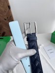 Bv 2026最新款男士编织腰带 纯手工Intreccio大格子编织 双面意大利小牛皮搭配微复古银色针扣 侧面有标识 皮带宽度35Mm 颜色: 深蓝 浅蓝 DD