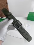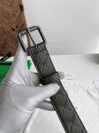 Bv 2026最新款男士编织腰带 纯手工Intreccio大格子编织 意大利原厂荔枝纹小牛皮 扁孔设计 搭配真空枪色带格纹滚轮针扣 可活动皮圈 宽度35Mm 颜色: 原野绿 DDD