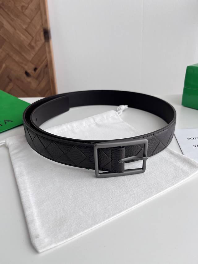 / Bv 2026最新款男士编织腰带 纯手工Intreccio大格子编织 意大利原厂荔枝纹小牛皮 搭配真空枪色针扣 侧面带标识 宽度35Mm 颜色: 方糖咖 DDD