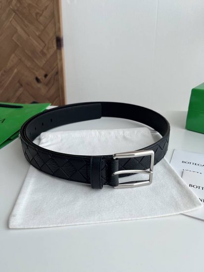 / Bv 2026最新款男士编织腰带 纯手工Intreccio大格子编织 意大利原厂Napa小牛皮 拼 原厂荔枝纹牛皮 搭配微复古银色针扣 侧面带标识 宽度35Mm