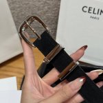 / Western 中号25毫米皮带 这款采用麂皮牛皮革 牛皮革衬里,中腰,金色饰面,西部风格搭扣,2个金属环扣1个金属尖头装饰,第一个圆环底部镌刻品牌标识. 宽度