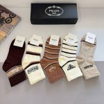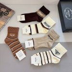 配包装 一盒5双 DDD prada 普拉达 新款中筒袜子,竹棉面料,经典三角标Logo 个性时尚百搭款,你值得拥有哦 DDD