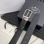 Prada 普拉达 专柜同款 男士休闲双面用腰带 宽3.4Cm 采用光滑双面头层小牛皮...