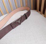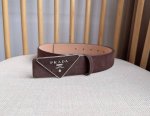 prada 普拉达 专柜最新款 这款柔软的绒面皮革腰带设计简约精致 三角形徽标金属搭扣为现代配饰画龙点睛 别具一格的特色和现代感 呈现精致质感 宽:3.5Cm
