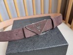 prada 普拉达 专柜最新款 这款柔软的绒面皮革腰带设计简约精致 三角形徽标金属搭扣为现代配饰画龙点睛 别具一格的特色和现代感 呈现精致质感 宽:3.5Cm DDD
