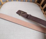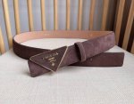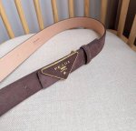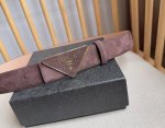 prada 普拉达 专柜最新款 这款柔软的绒面皮革腰带设计简约精致 三角形徽标金属搭扣为现代配饰画龙点睛 别具一格的特色和现代感 呈现精致质感 宽:3.5Cm DDD