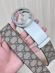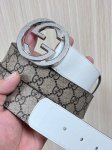 特 一面以灰杏色皮革匠心打造,另一面甄选咖色Gg Supreme帆布打造 钯金色调配件 腰带环,饰Gucci印花压纹细节 长方形搭扣...