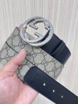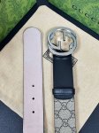 特 一面以灰杏色皮革匠心打造,另一面甄选咖色Gg Supreme帆布打造 钯金色调配件 腰带环,饰Gucci印花压纹细节 长方形搭扣...
