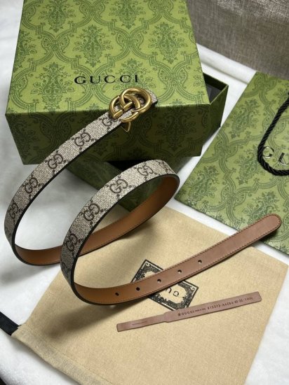 G家 宽度2.0宽Cm,Gg Marmont系列推出双面款式,揭幕新季风尚。这款窄版腰带以Gg Supreme帆布和皮革打造,缀饰标志性双G造型搭扣,一展别致韵