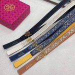 Tory Burch 托里.伯奇双面腰带,可滑动调节的标志性双 T Logo 黄铜搭扣,面层:品牌专用布 底层:牛皮革 适于佩戴在腰部或臀部上。宽度2.5Cm,