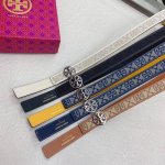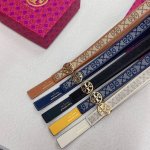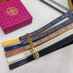 Tory Burch 托里.伯奇双面腰带,可滑动调节的标志性双 T Logo 黄铜搭扣,面层:品牌专用布 底层:牛皮革 适于佩戴在腰部或臀部上。宽度2.5Cm,每一个设计细节,兼具实用与美观。