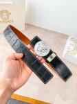 范思哲,宽4.0Cm,原单精品,3D美杜莎腰带扣-Barocco印花-材质,头层牛皮,此款光滑的Saffiano皮革腰带饰有Barocco印花。配有带3D美...