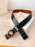 宽度:4.0Cm 范思哲 此款椭圆五金配件、腰带饰有标志性的Versace美杜莎头像扣,彰显品牌格调。是一款精美的衣橱必备单品。