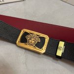 此款范思哲时尚腰带由柔软的小牛皮革制成,饰有立体美杜莎搭扣。4.0Cm宽