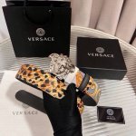 范思哲, 新款小牛皮腰带,全身饰有Cheetah Foulard印花,并点缀立体La Medusa配件,4.0Cm